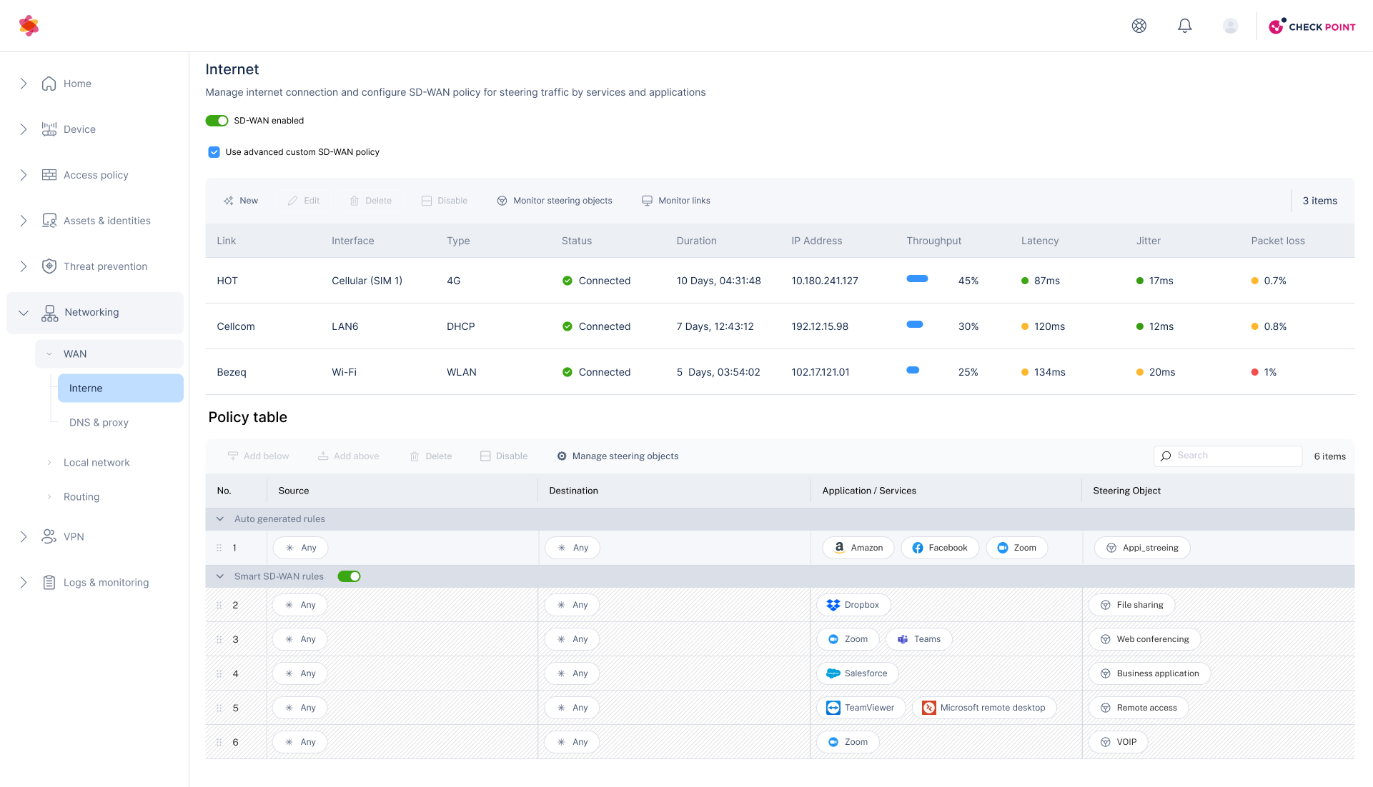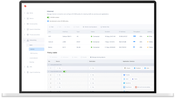 - Smart SD-WAN toggle allows users to enable/disable auto-optimized routing instantly.